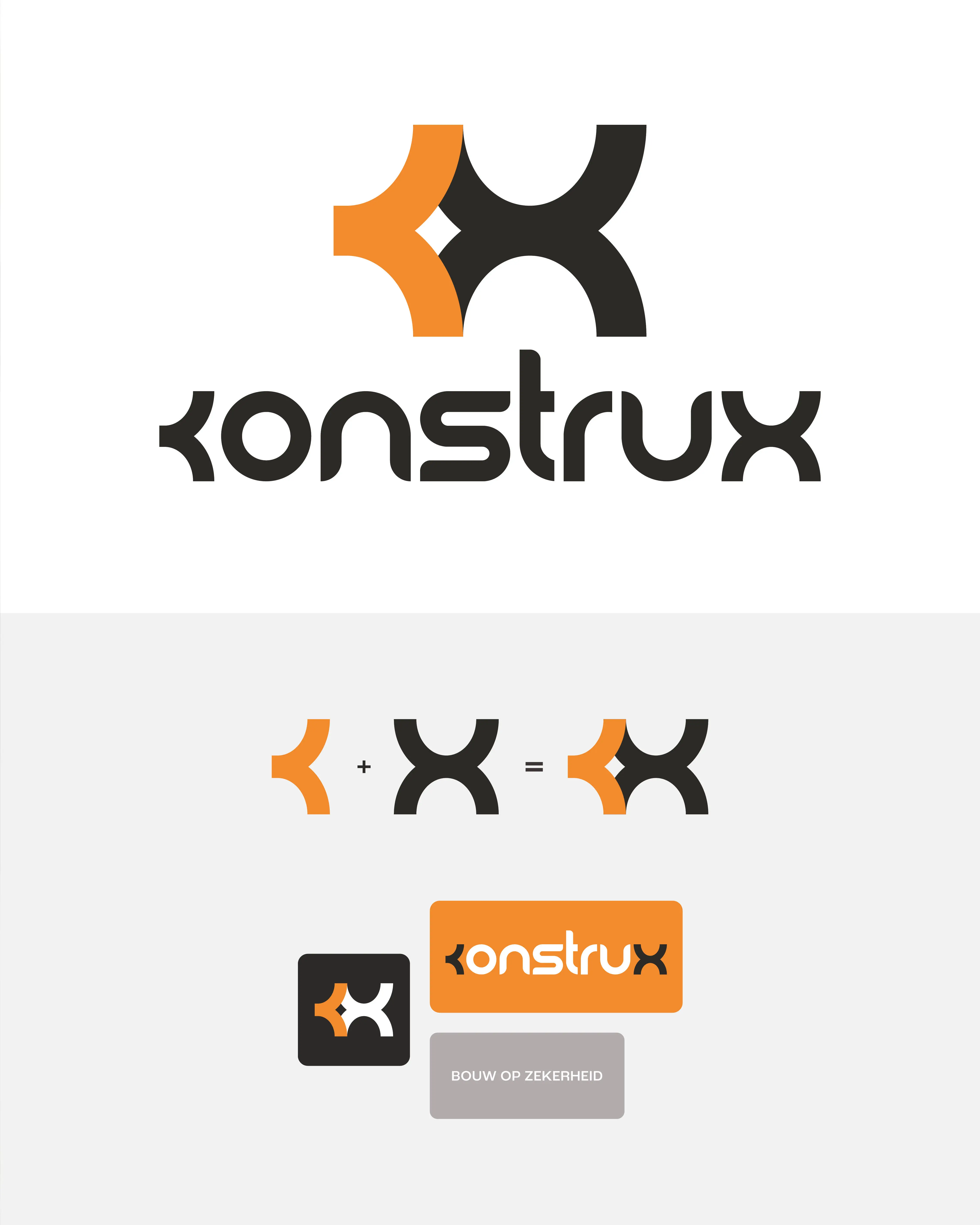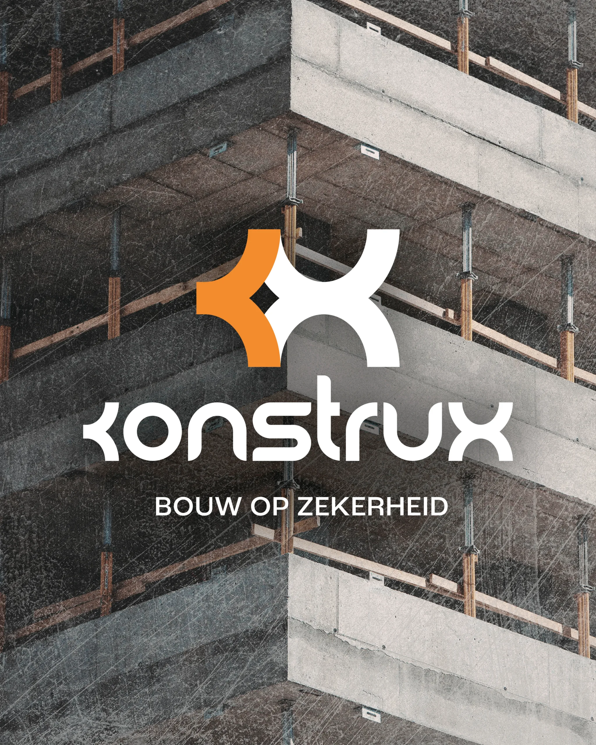 De gekozen naam Konstrux straalt stevigheid en moderniteit uit, met een duidelijke link naar de wereld van beton en constructie. De slogan “Bouw op zekerheid” versterkt dit gevoel van betrouwbaarheid en degelijkheid.